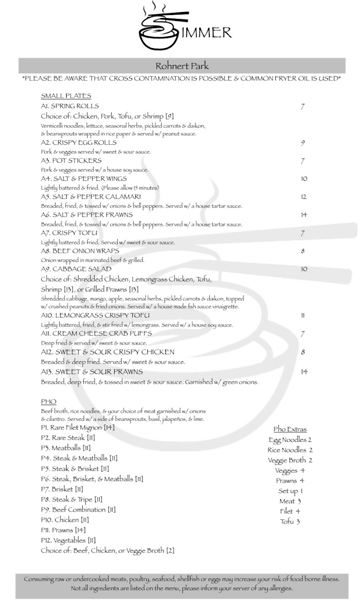 At Simmer Menu, located at 6358 Commerce Blvd, Rohnert Park, CA, the vibrant flavors of every dish are crafted to take you on a culinary adventure. From fresh, locally sourced ingredients to mouth-watering, expertly prepared meals, each item on the menu is a testament to bold, balanced flavors. Whether you're in the mood for savory comfort food or a more adventurous palate, Simmer has something to delight every taste. The menu features a unique selection that combines classic favorites with innovative dishes that cater to a variety of dietary preferences. Each bite is an invitation to savor the essence of quality cooking. So, grab a seat, let the aromas surround you, and dive into a menu that’s designed to satisfy, surprise, and keep you coming back for more.